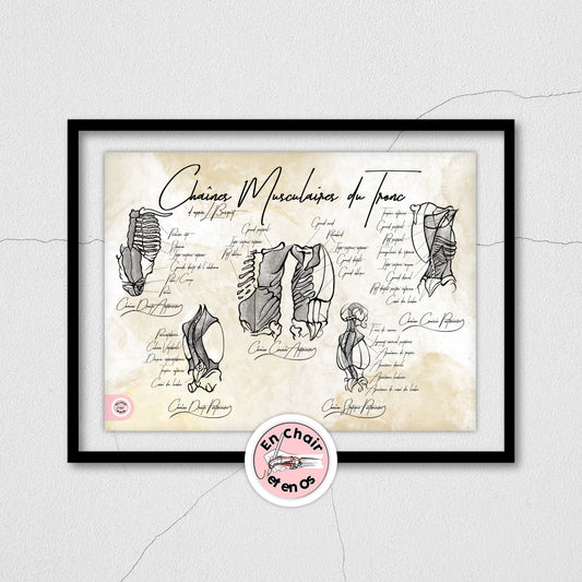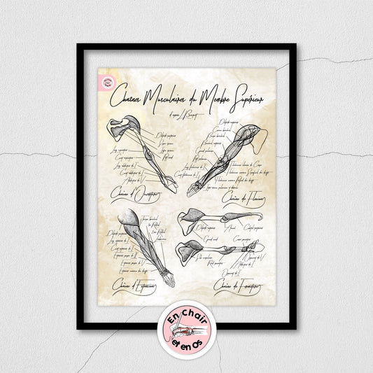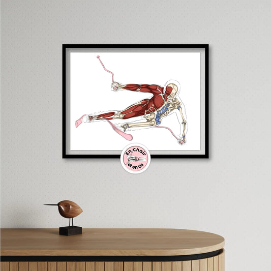 Les planches anatomiques du corps humain En Chair et en Os, à la fois support scientifique, outil éducatif et élément de décoration intérieure, permettent de comprendre, visualiser et transmettre les connaissances liées au squelette humain, à la musculature humaine et aux grands systèmes du corps.